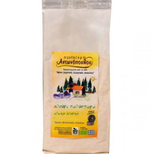 Αλεύρι ολικής άλεσης πολύσπορο από ντόπιους σπόρους που καλλιεργείται βιολογικά στο κτήμα Αντωνόπουλου στο Δίλοφο Λάρισας. Μεγάλης διατροφικής αξίας αφού περιέχει ζέα, μονόκκο σιτάρι, ρεβύθι, κριθάρι-πτισάνη, καλαμπόκι, σιτάρι και βρώμη αλεσμένα σε πετρόμυλο.