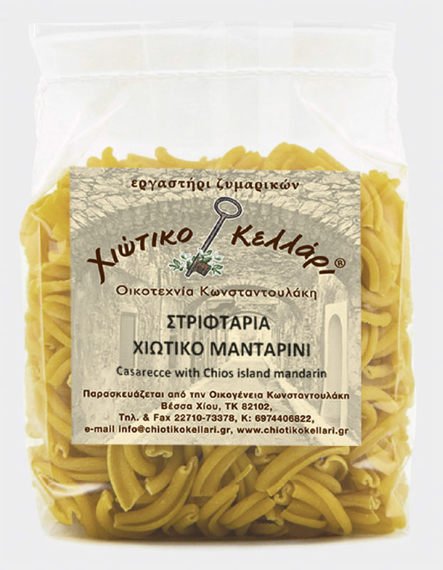 Εδώ και αρκετούς αιώνες η Χίος φημίζεται για το μανταρίνι το οποίο θεωρείται από τα πιο αρωματικά στο κόσμο και είναι προϊόν ΠΟΠ. Έτσι δημιουργήθηκαν λοιπόν και τα αμιγώς χιώτικα στριφτάρια με μανταρίνι.