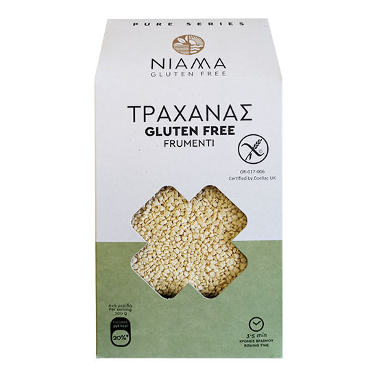 Παρασκευασμένα στην Ελλάδα από υψηλής ποιότητας πρώτες ύλες, όπως το ρεβυθάλευρο, το καλαμποκάλευρο και το ρυζάλευρο, τα ΝΙΑΜΑ Gluten Free είναι μια ολοκληρωμένη σειρά ζυμαρικών χωρίς γλουτένη, συντηρητικά και γενετικά τροποποιημένους οργανισμούς. Μοναδικά, αγνά και γευστικά, τα ζυμαρικά ΝΙΑΜΑ είναι πλούσια σε πρωτεΐνες, βιταμίνες του συμπλέγματος Β και φυτικές ίνες. Εξαιρετική επιλογή για άτομα με δυσανεξία στη γλουτένη (κοιλιοκάκη) ή για όσους ακολουθούν διατροφή χωρίς γλουτένη.